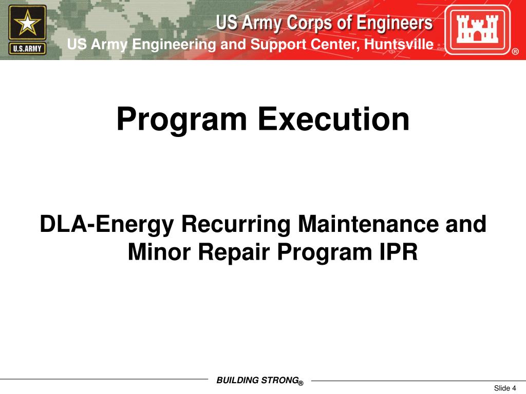 Program Execution DLA-Energy Recurring Maintenance and Minor Repair Program IPR