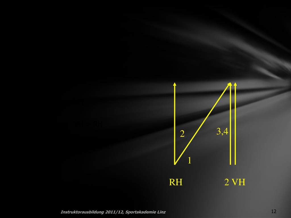 2 Platzierungen RH 2 VH gerade Weiter Weg zw. VH > RH 3,4 2 1 RH 2 VH 12 Instruktorausbildung 2011/12, Sportakademie Linz