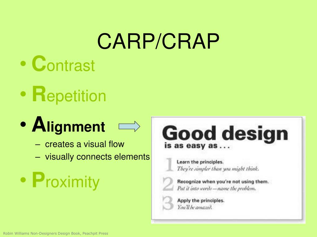 CARP • Contrast • Alignment • Repetition • Proximity Robin Williams Non-Designers Design Book, Peachpit Press