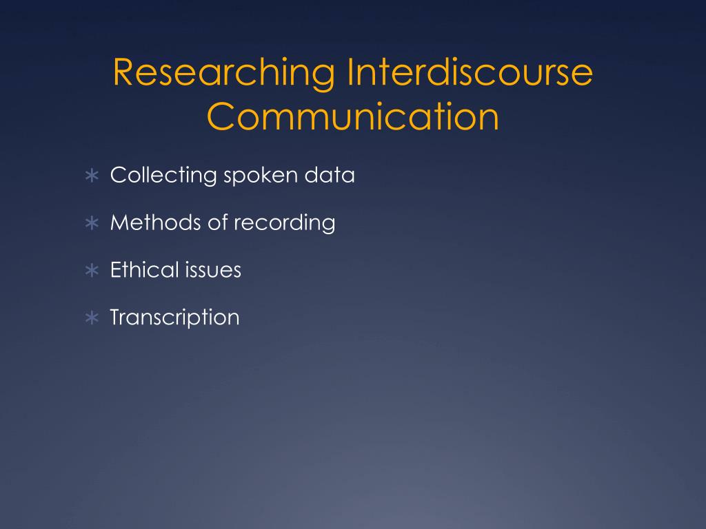 Researching Interdiscourse Communication • Collecting spoken data • Methods of recording • Ethical issues • Transcription