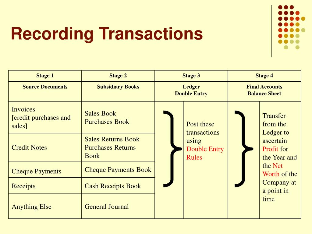 Subsidiary Books • Source documents • List • Reduce entries in accounts in nominal ledger