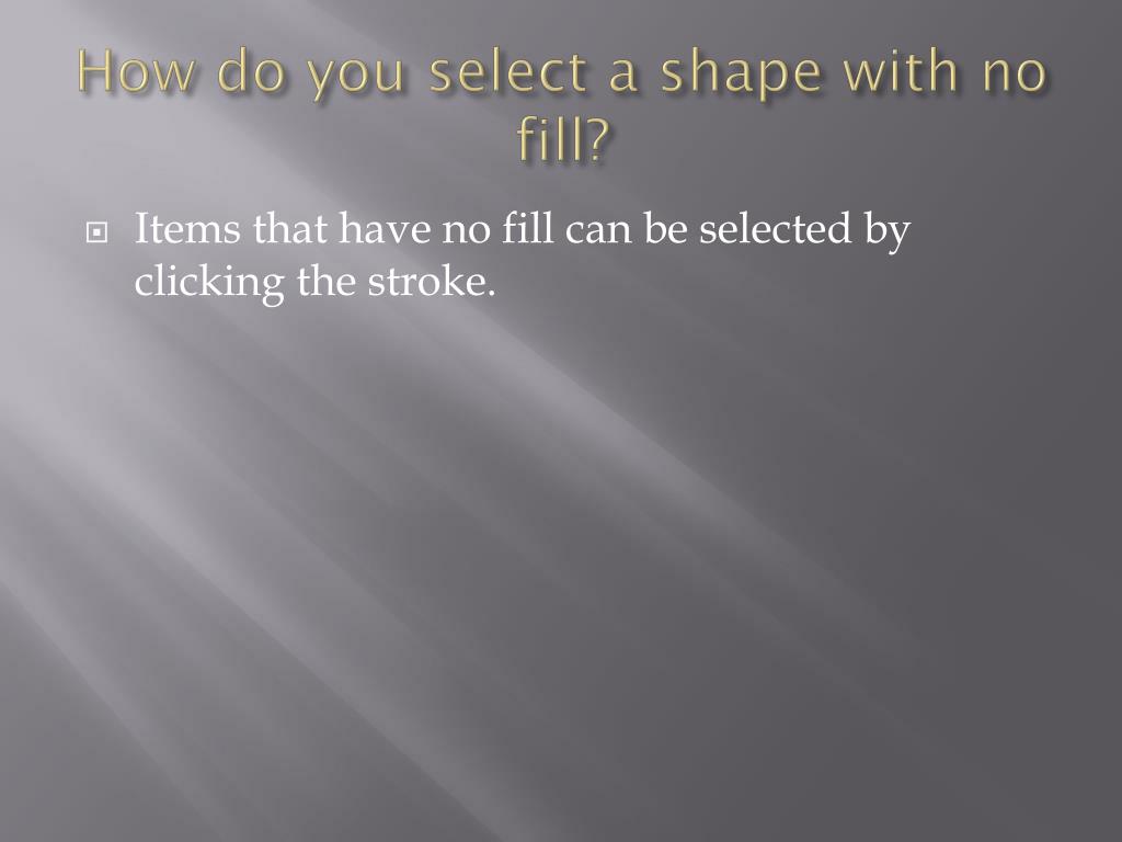 How do you select a shape with no fill? • Items that have no fill can be selected by clicking the stroke.