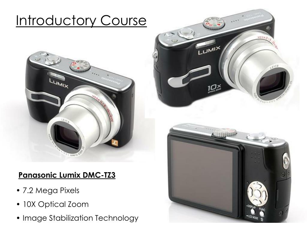Introductory Course Panasonic Lumix DMC-TZ3 • 7.2 Mega Pixels • 10X Optical Zoom • Image Stabilization Technology
