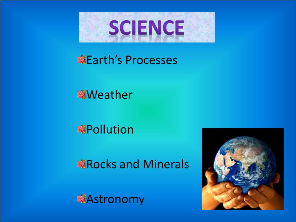 Science • Earth’s Processes • Weather • Pollution • Rocks and Minerals • Astronomy