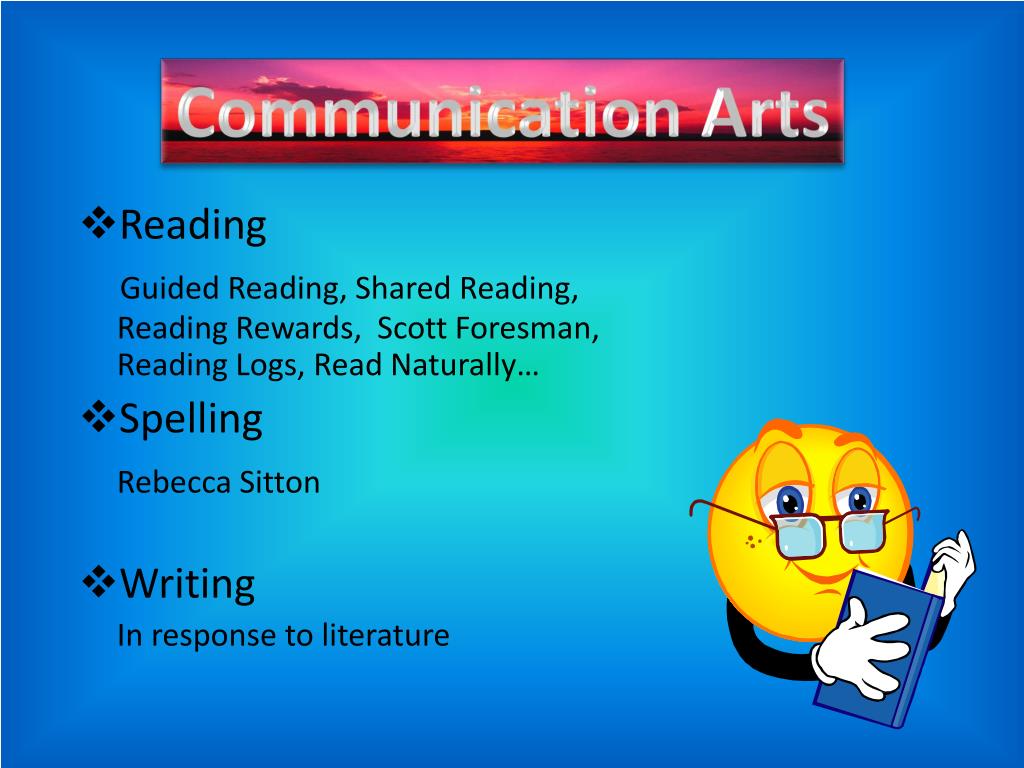 Communication Arts • Reading Guided Reading, Shared Reading, Reading Rewards, Scott Foresman, Reading Logs, Read Naturally… • Spelling Rebecca Sitton • Writing In response to literature