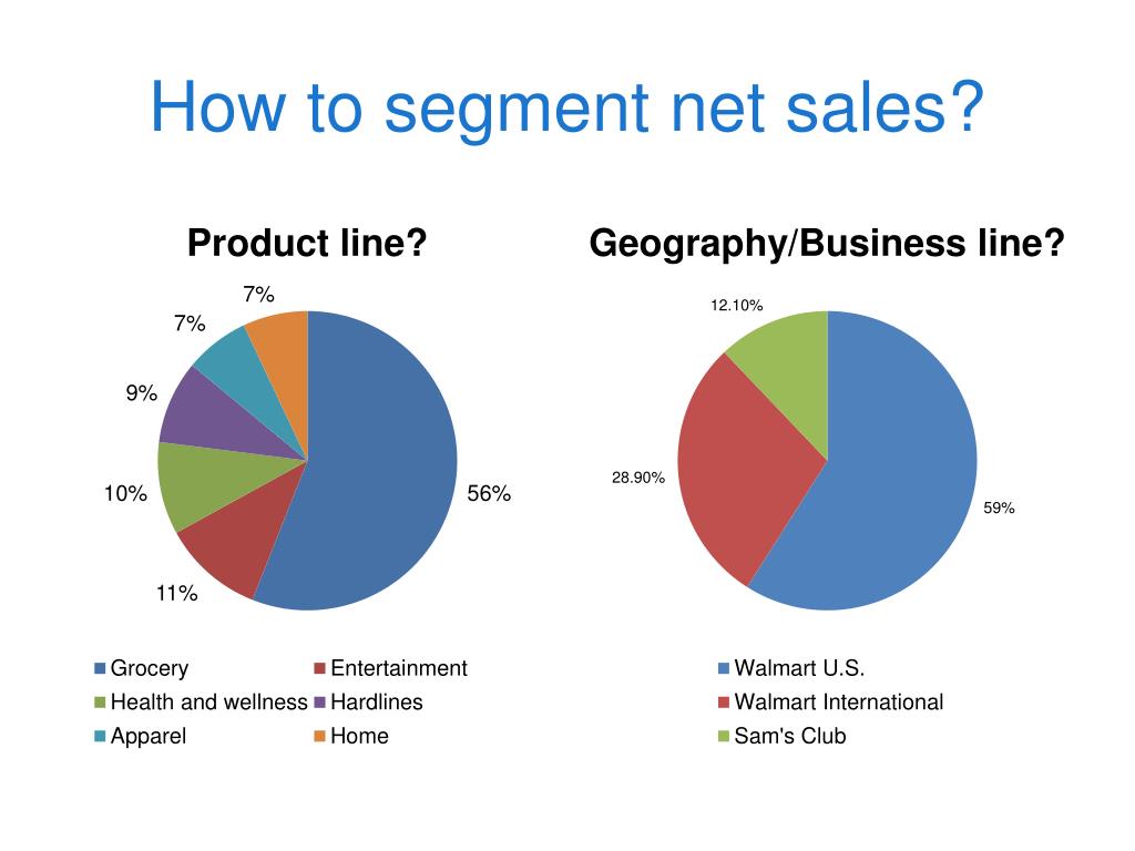 Product line • Walmart international out growing U.S. • Makes sense, U.S. is saturated • Geography/product line seems more promising for projection