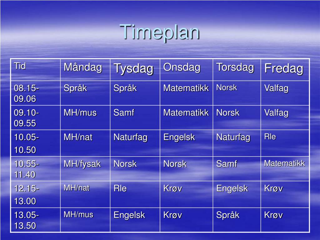 Norsk hausten 2013: Saktekstar Intervju Artiklar Sidemål Litterære verkemiddel Dialektar og sosiolektar Litteraturhistorie Boka om meg sjølv Skjønnlitt/sak 9. og 10. klasse Tre karakterar; m + h + s KRØV hausten 2013: Orientering Styrke/uthald Lagsport Førstehjelp Dans Samfunnsfag Val 2013 Demokrati / politikk Verdskrigane Rus. rev. Norsk/KRØV