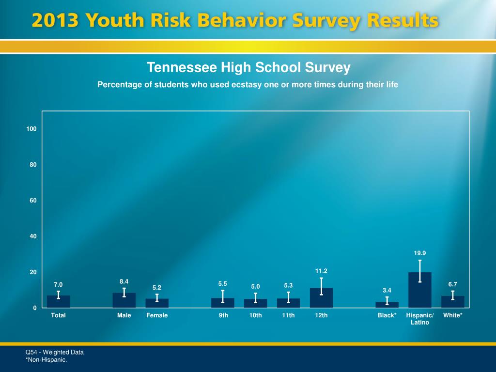 Tennessee High School Survey Percentage of students who used ecstasy one or more times during their life Q54 - Weighted Data *Non-Hispanic.