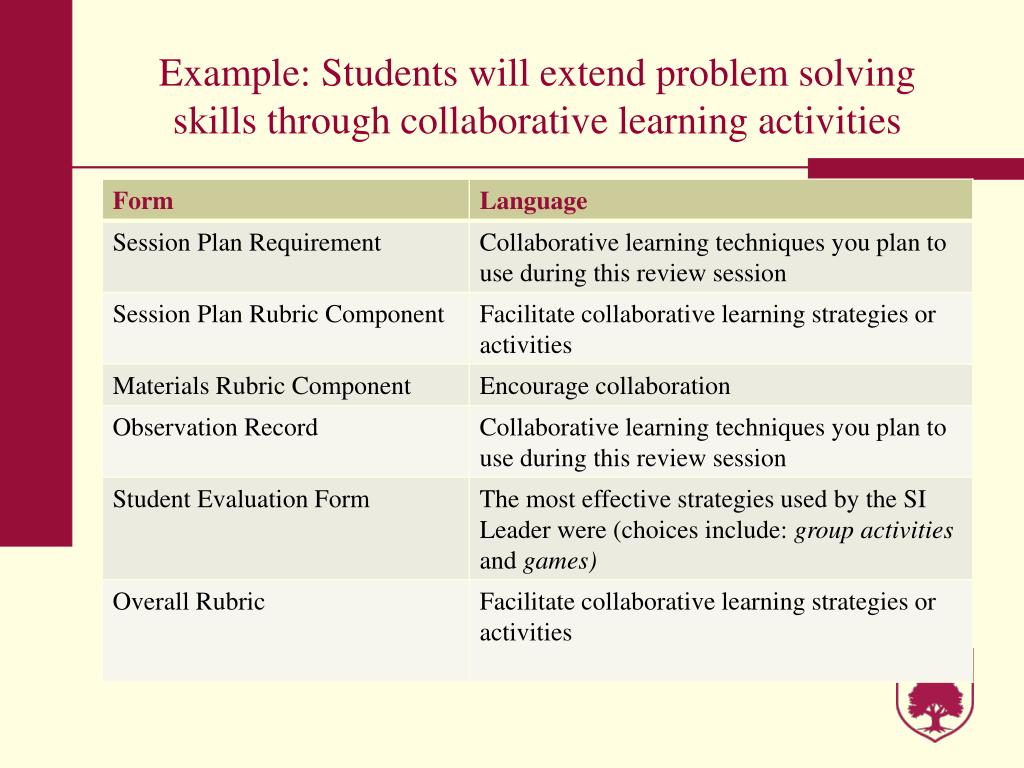 Example: Students will extend problem solving skills through collaborative learning activities