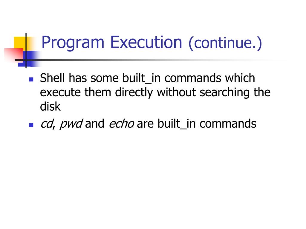 Program Execution(continue.) • Shell has some built_in commands which execute them directly without searching the disk • cd, pwd and echo are built_in commands