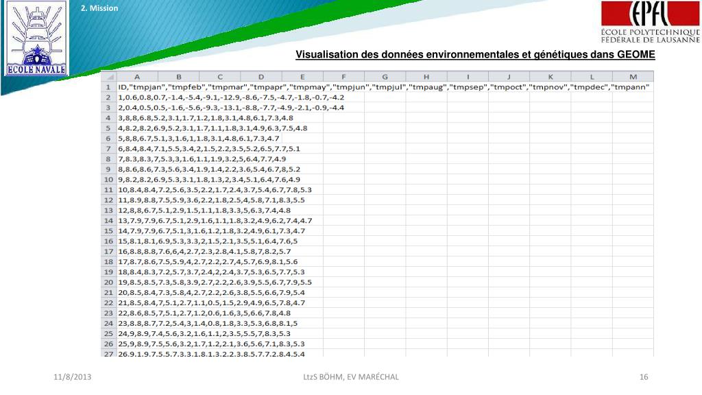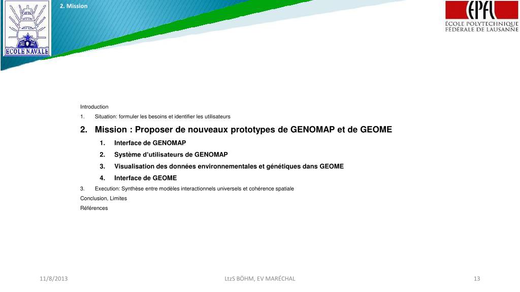 2. Mission • Visualisation des donnéesenvironnementales et génétiquesdans GEOME LtzS BÖHM, EV MARÉCHAL