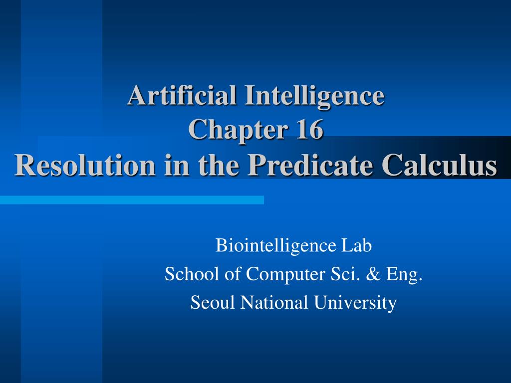 Artificial Intelligence Chapter 16Resolution in the Predicate Calculus Biointelligence Lab School of Computer Sci. & Eng. Seoul National University