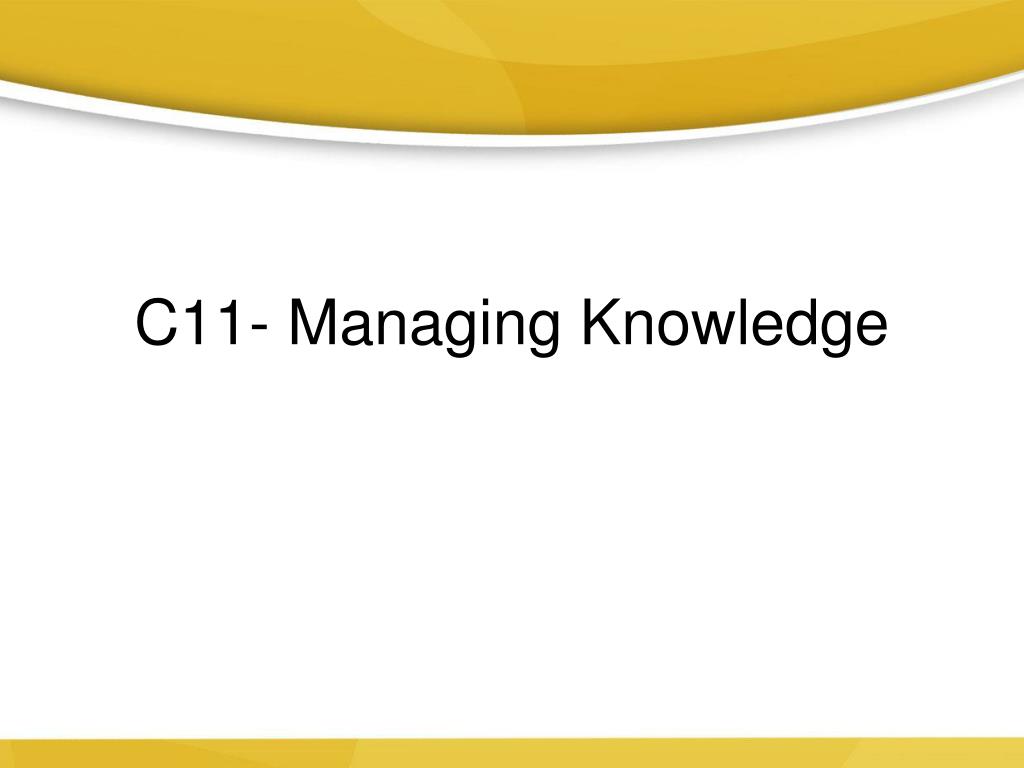 C11- Managing Knowledge. About Knowledge . Knowledge is a firm asset: . Data: Flow of events or transactions captured by organization’s systems Knowledge: Cognitive event in people's heads; know how; situational Knowledge Management: