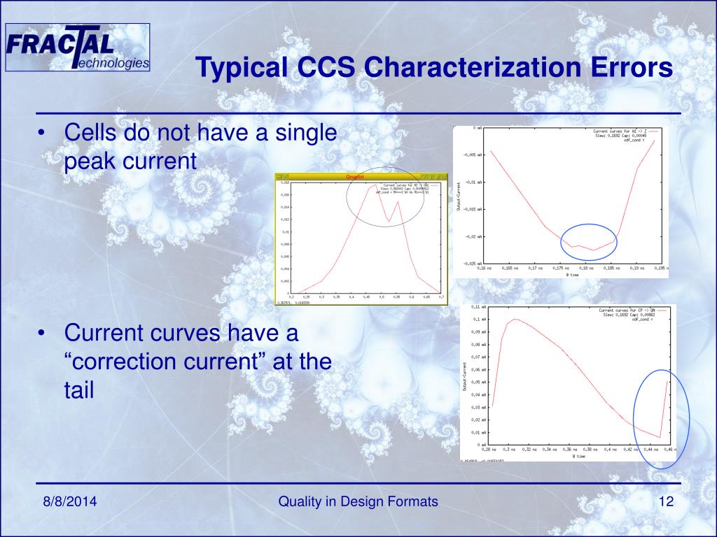 Typical CCS Characterization Errors • Cells do not have a single peak current • Current curves have a “correction current” at the tail Quality in Design Formats