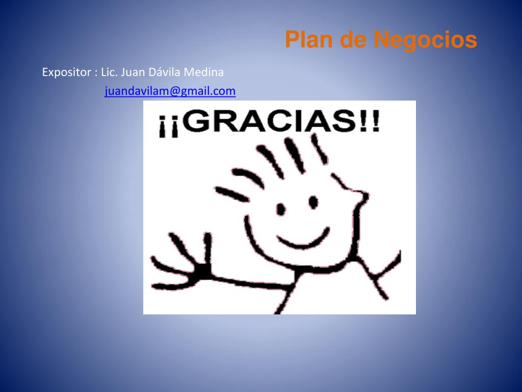 Plan de Negocios Expositor : Lic. Juan Dávila Medina juandavilam@gmail.com