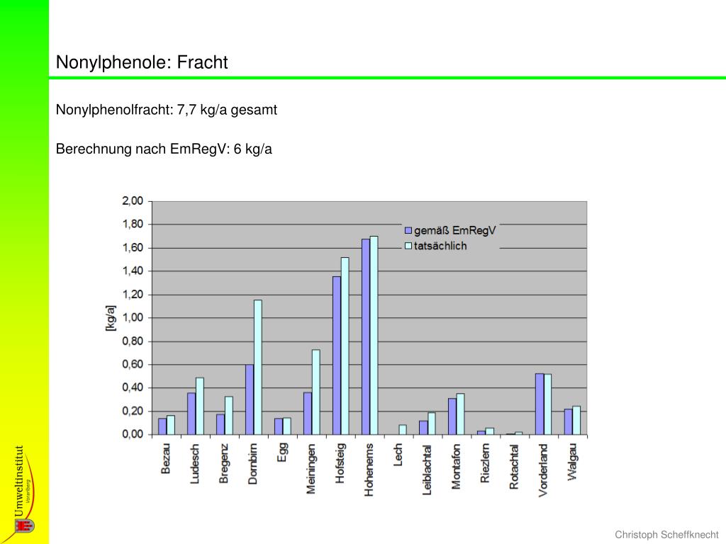 Nonylphenole: Fracht Nonylphenolfracht: 7,7 kg/a gesamt Berechnung nach EmRegV: 6 kg/a
