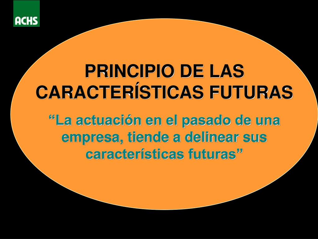 PRINCIPIO DE LAS CARACTERÍSTICAS FUTURAS “La actuación en el pasado de una empresa, tiende a delinear sus características futuras”