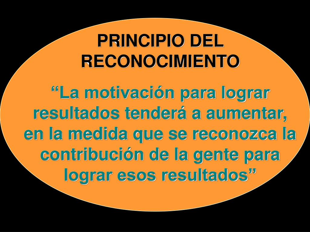 PRINCIPIO DEL RECONOCIMIENTO “La motivación para lograr resultados tenderá a aumentar, en la medida que se reconozca la contribución de la gente para lograr esos resultados”