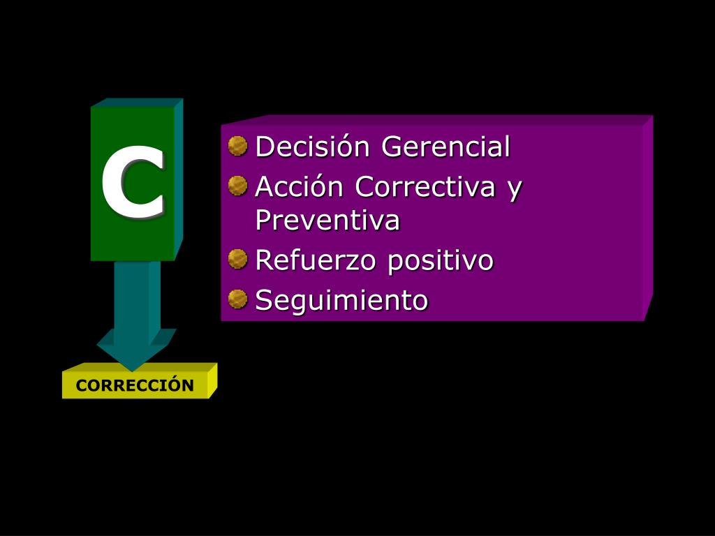 C • Decisión Gerencial • Acción Correctiva y Preventiva • Refuerzo positivo • Seguimiento CORRECCIÓN