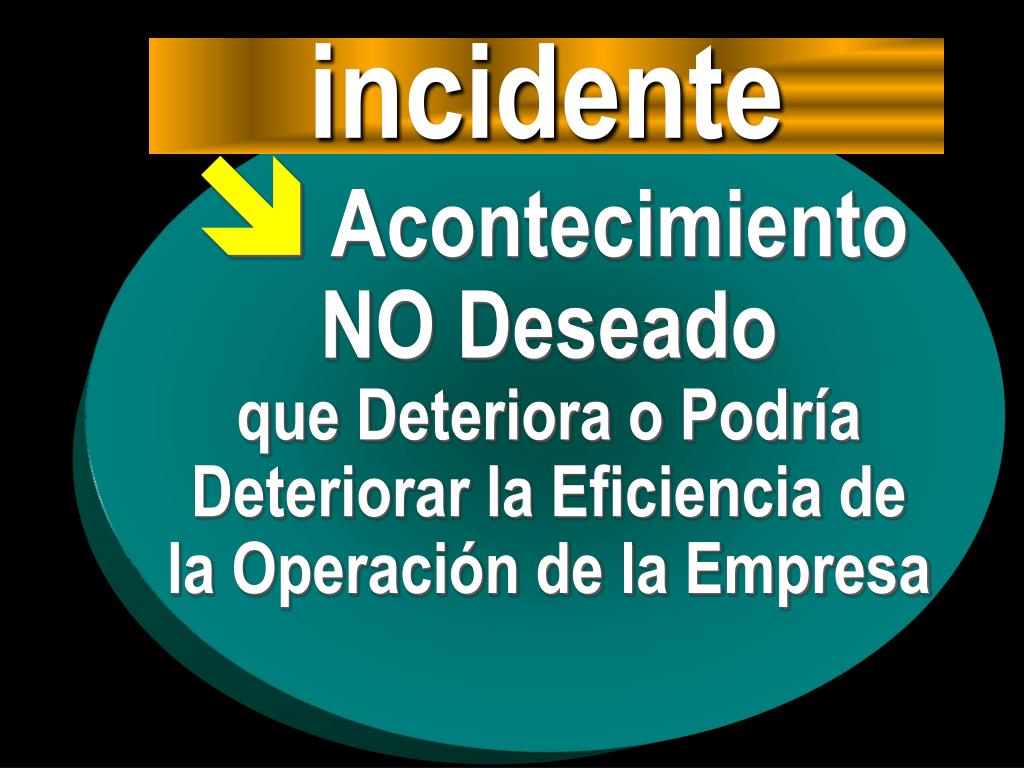 incidente • Acontecimiento NO Deseadoque Deteriora o Podría Deteriorar la Eficiencia de la Operación de la Empresa