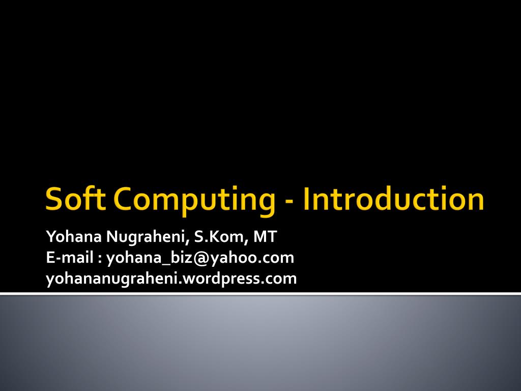 Yohana Nugraheni, S.Kom, MT E-mail : yohana_biz@yahoo.com yohananugraheni.wordpress.com Soft Computing - Introduction