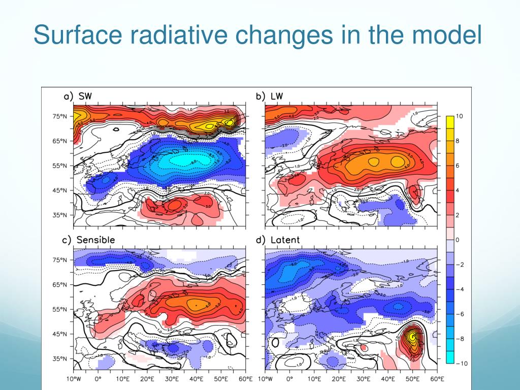 Large-scaleresponse • Seaiceisresponding to solar changes by decreasingitscover in the NordicSeas • The large-scaleatmospheric circulation does not exhibitsignificant changes over the North Atlantic sector in summer