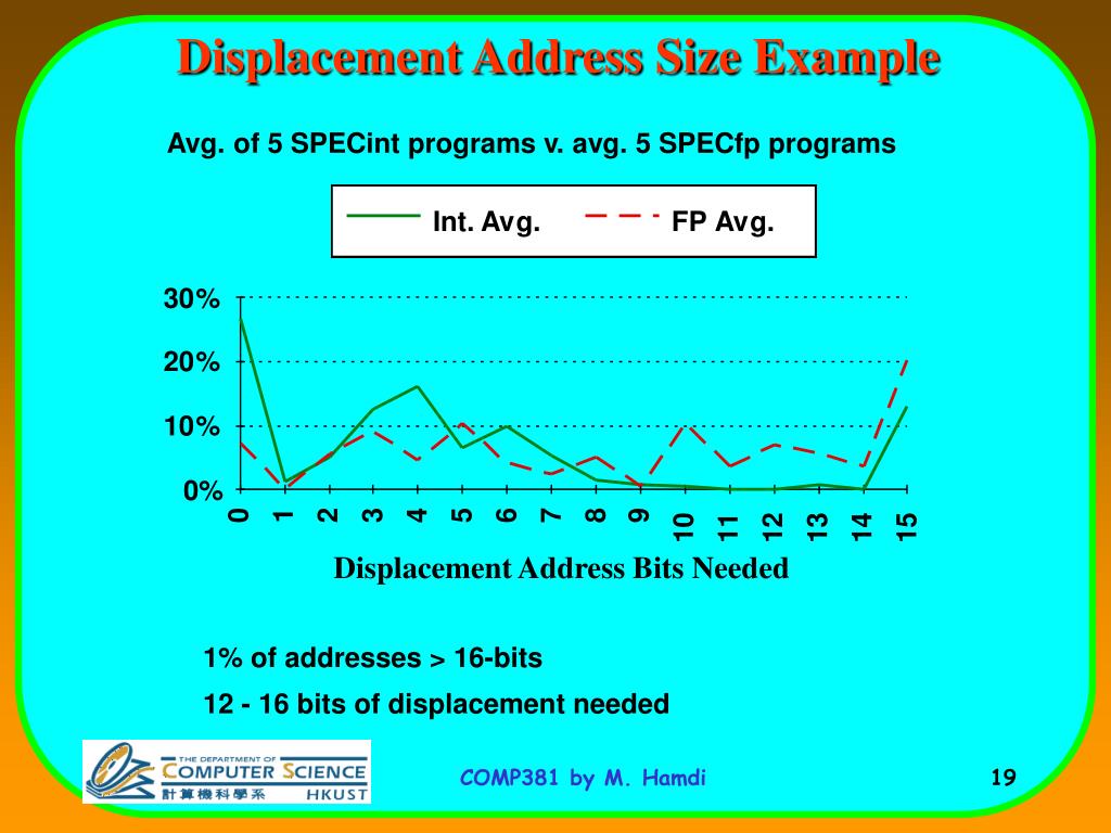Displacement Address Bits Needed Displacement Address Size Example Avg. of 5 SPECint programs v. avg. 5 SPECfp programs 1% of addresses > 16-bits 12 - 16 bits of displacement needed