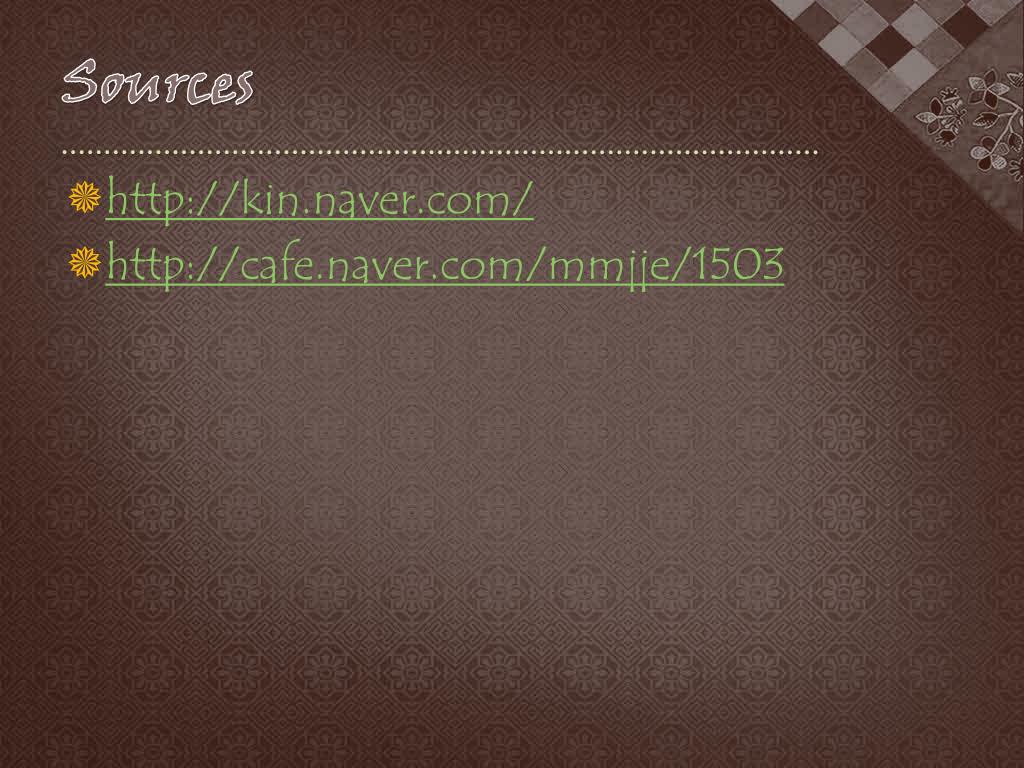 Sources • http://kin.naver.com/ • http://cafe.naver.com/mmjje/1503
