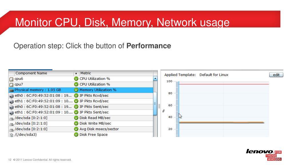 Monitor CPU, Disk, Memory, Network usage Operation step: Click the button of Performance