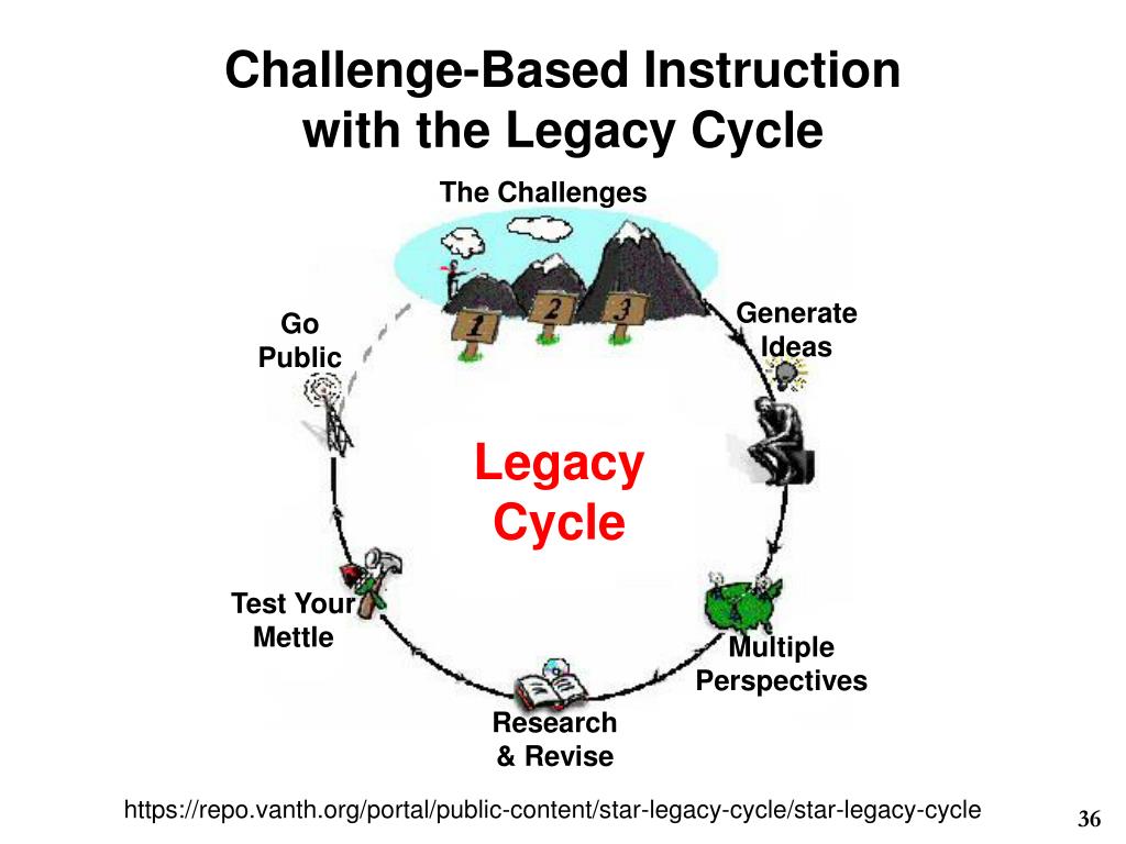 Challenge-Based Instruction with the Legacy Cycle The Challenges Generate Ideas Go Public Legacy Cycle Test Your Mettle Multiple Perspectives Research & Revise https://repo.vanth.org/portal/public-content/star-legacy-cycle/star-legacy-cycle 36