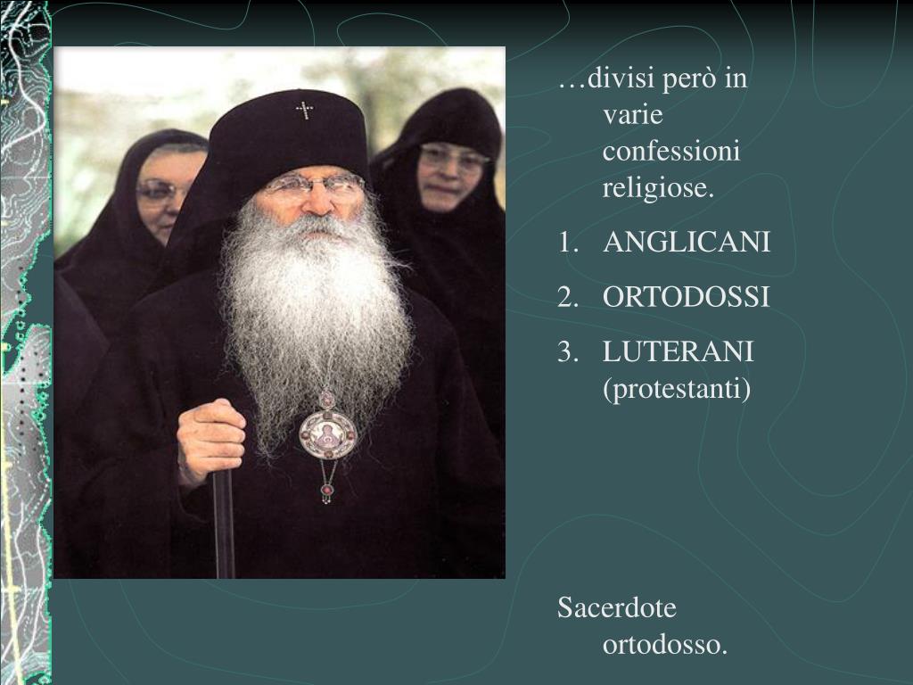 …divisi però in varie confessioni religiose. • ANGLICANI • ORTODOSSI • LUTERANI (protestanti) • Sacerdote ortodosso.