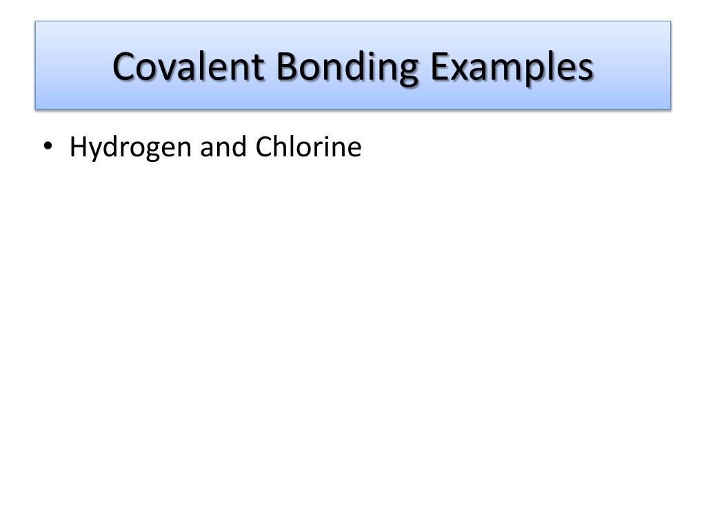Covalent Bonding Examples • Hydrogen and Chlorine