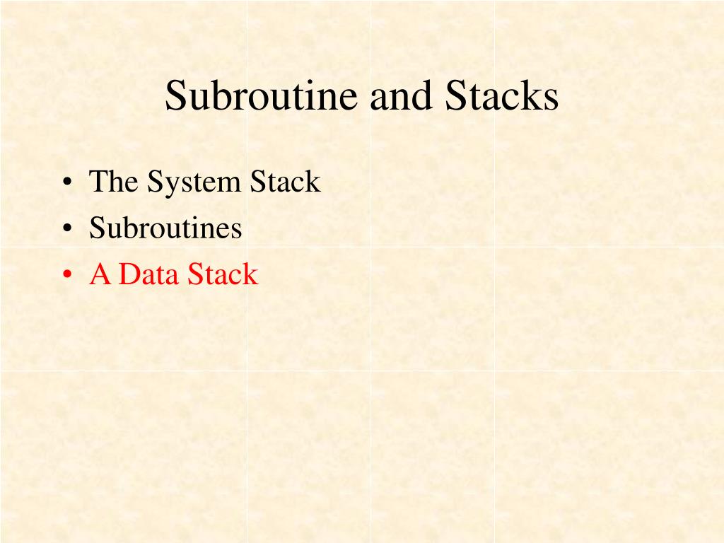 Subroutine and Stacks • The System Stack • Subroutines • A Data Stack