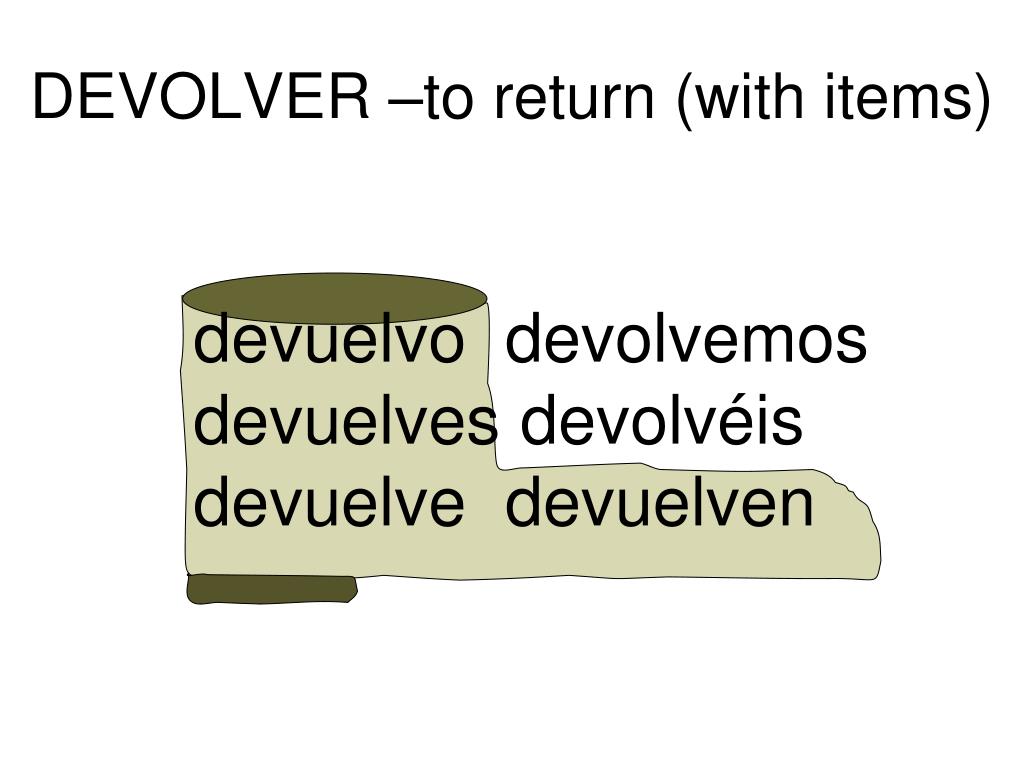 DEVOLVER –to return (with items) devuelvodevolvemos devuelvesdevolvéis devuelvedevuelven