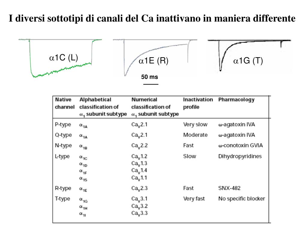 I diversi sottotipi di canali del Ca inattivano in maniera differente a1C (L) a1E (R) a1G (T) 50 ms