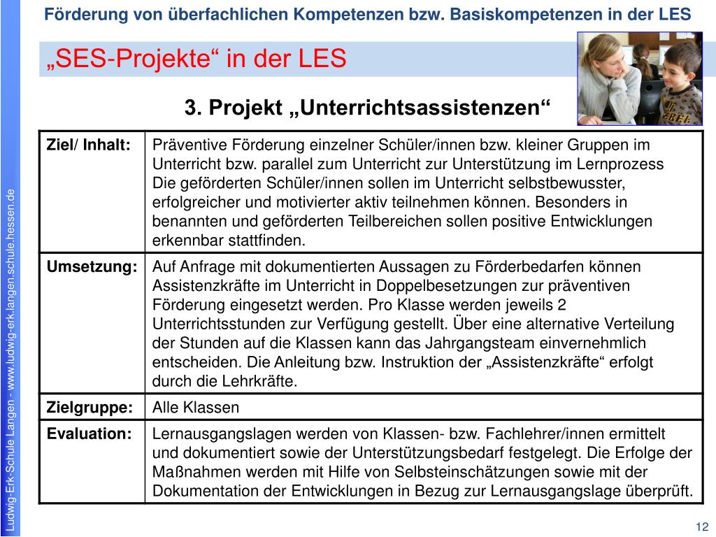 „SES-Projekte“ in der LES 3. Projekt „Unterrichtsassistenzen“