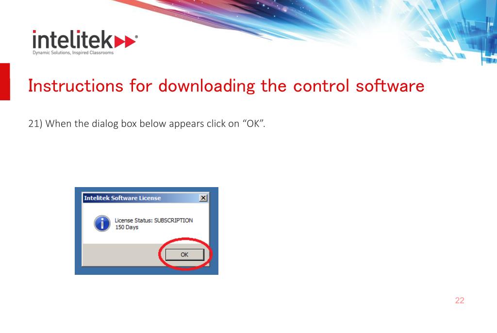 Instructions for downloading the control software 21) When the dialog box below appears click on “OK”.
