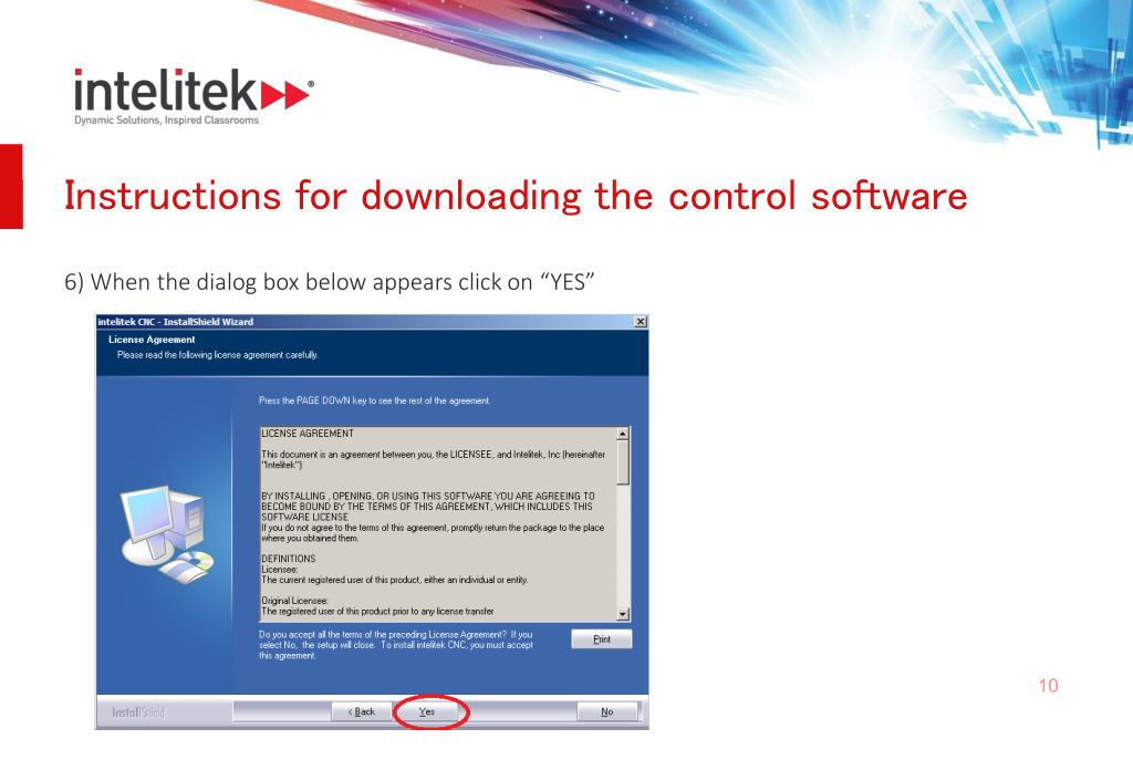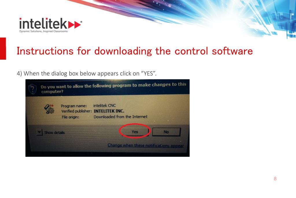 Instructions for downloading the control software 6) When the dialog box below appears click on “YES”