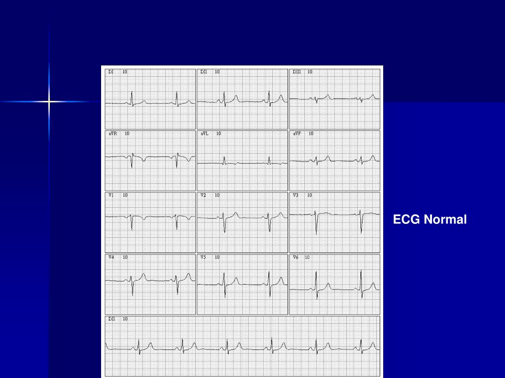 ECG Normal V1: Morfologia rS, com T negativa V6: Morfologia Rs com T positiva