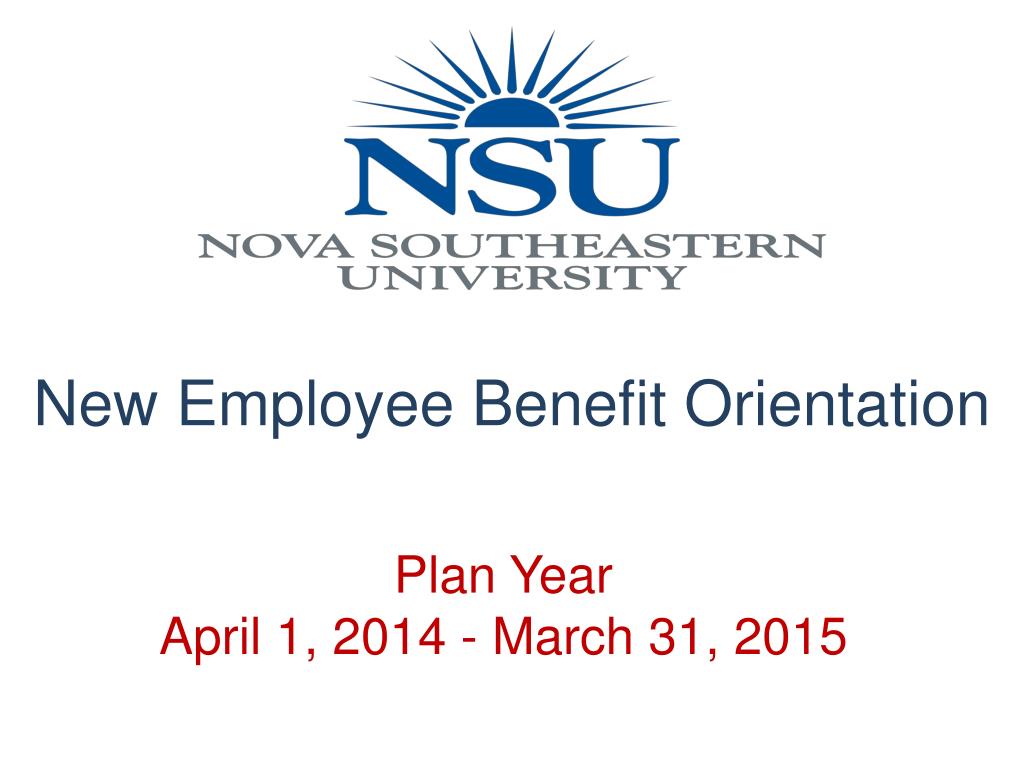New Employee Benefit Orientation Plan Year April 1, 2014 - March 31, 2015