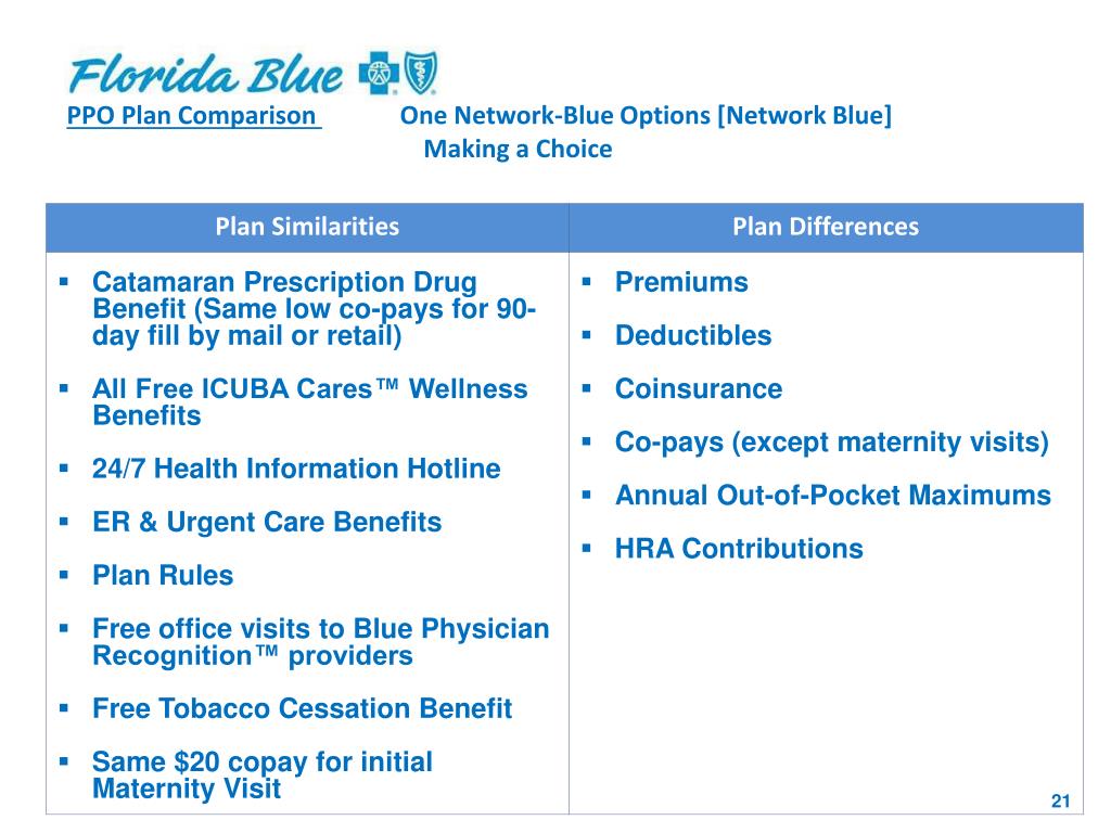 , PPO Plan Comparison One Network-Blue Options [Network Blue] Making a Choice