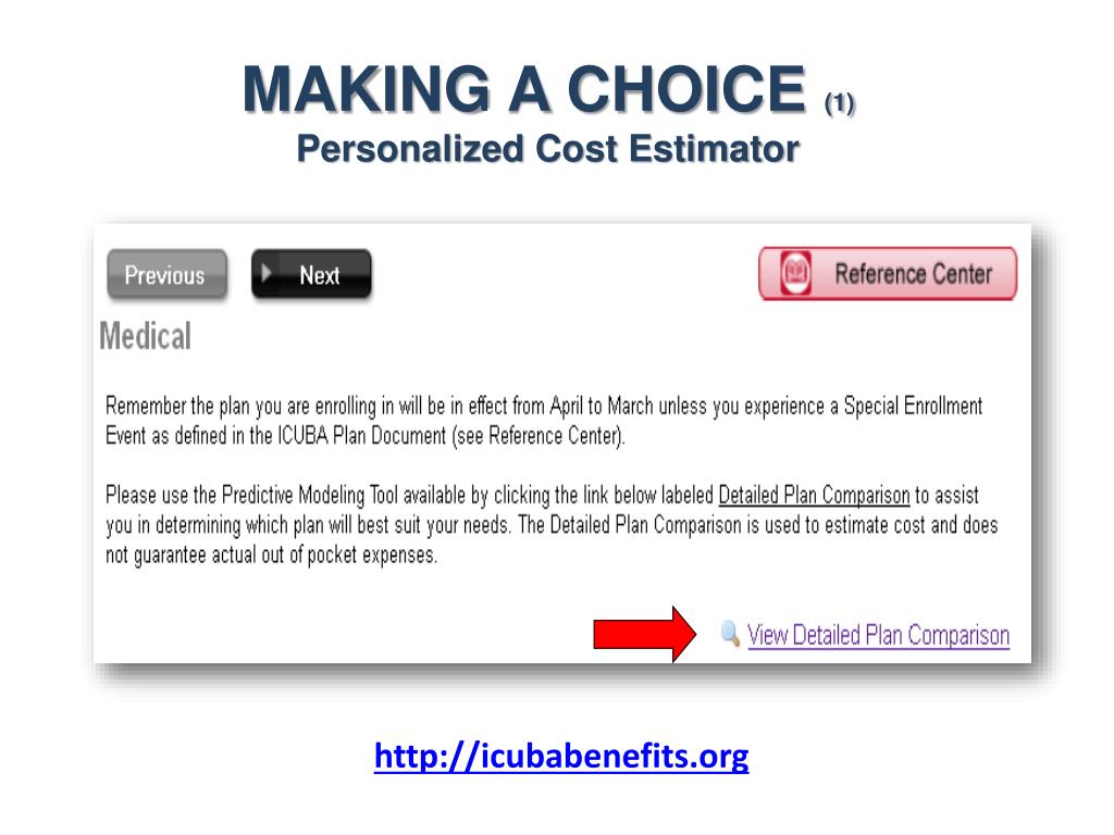 MAKING A CHOICE (1)Personalized Cost Estimator http://icubabenefits.org