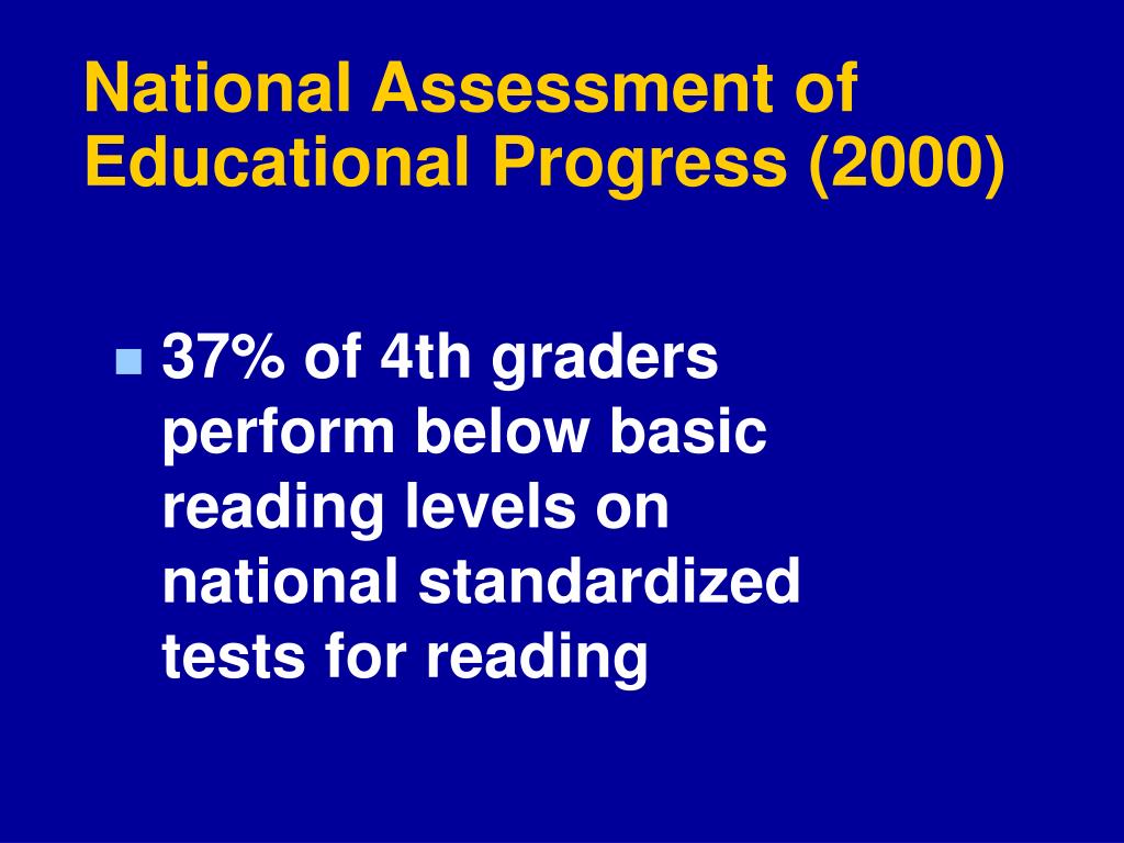 National Assessment of Educational Progress (2000) • 37% of 4th graders perform below basic reading levels on national standardized tests for reading