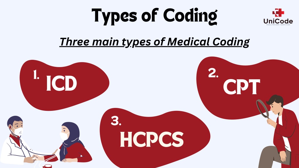 Types of Coding Three main types of Medical Coding 2. 1. ICD CPT 3. HCPCS