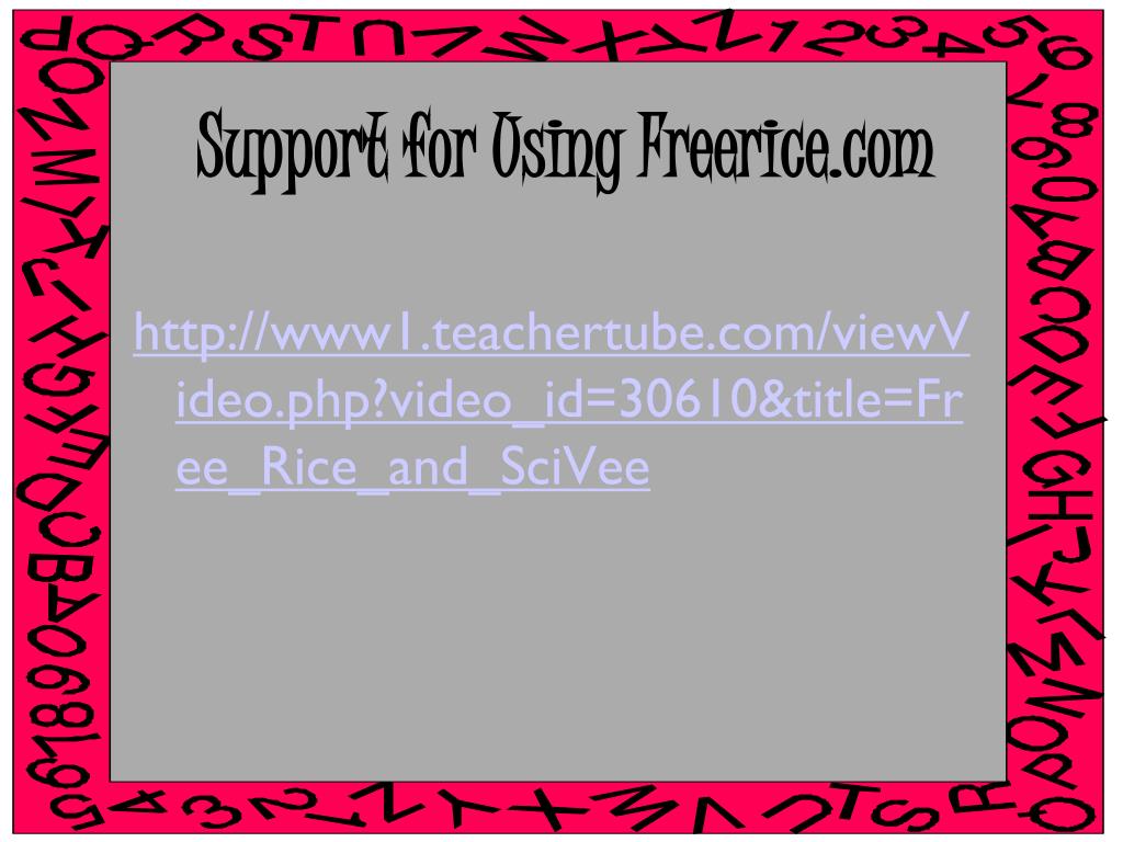 Support for Using Freerice.com http://www1.teachertube.com/viewVideo.php?video_id=30610&title=Free_Rice_and_SciVee