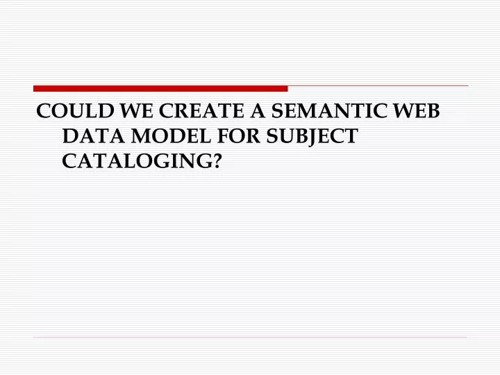 COULD WE CREATE A SEMANTIC WEB DATA MODEL FOR SUBJECT CATALOGING?