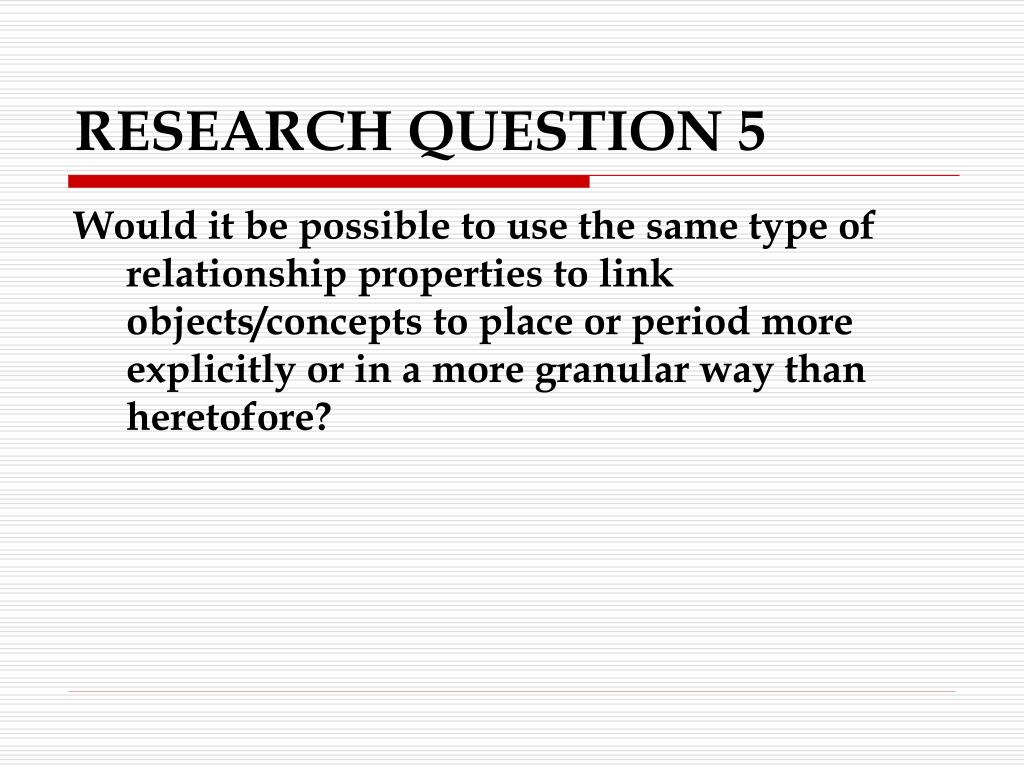RESEARCH QUESTION 5 • Would it be possible to use the same type of relationship properties to link objects/concepts to place or period more explicitly or in a more granular way than heretofore?