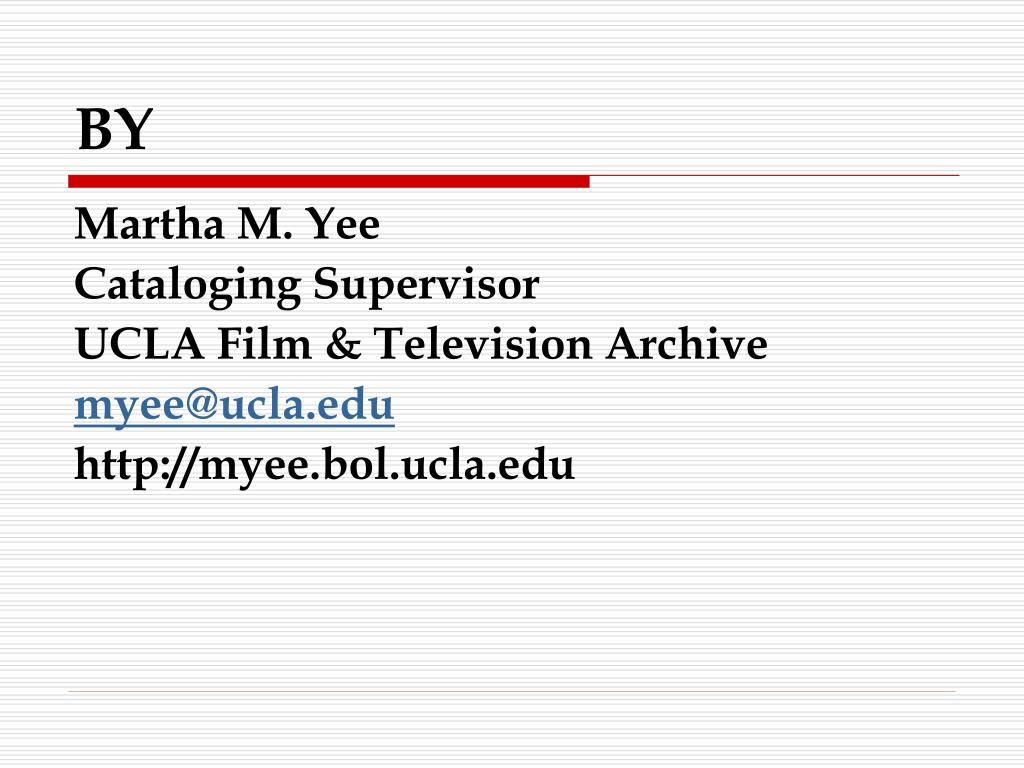 BY • Martha M. Yee • Cataloging Supervisor • UCLA Film & Television Archive • myee@ucla.edu • http://myee.bol.ucla.edu