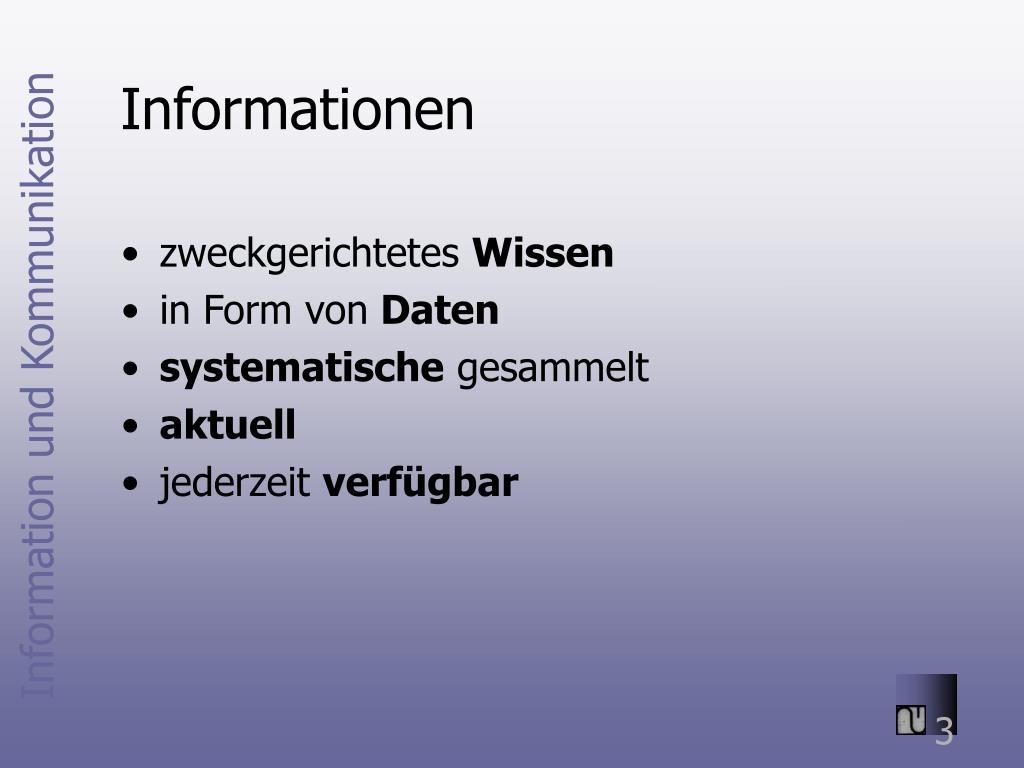 Informationen • zweckgerichtetes Wissen • in Form von Daten • systematische gesammelt • aktuell • jederzeit verfügbar
