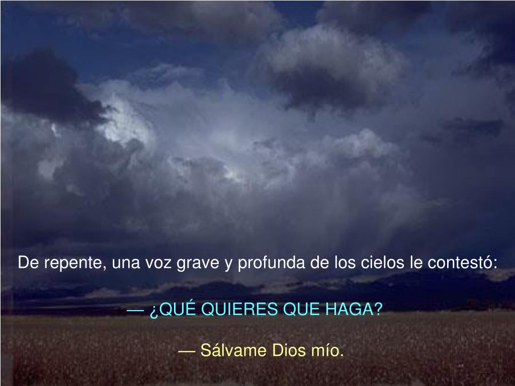 De repente, una voz grave y profunda de los cielos le contestó: — ¿QUÉ QUIERES QUE HAGA? — Sálvame Dios mío.